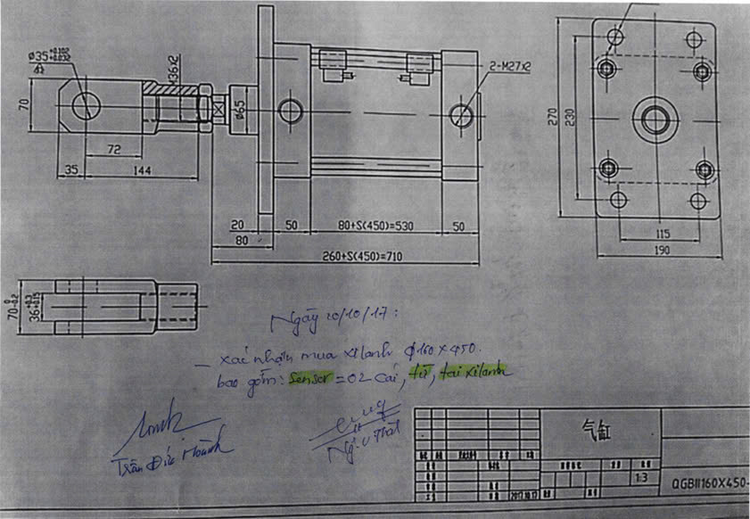 - Thông số kỹ thuật: Xy lanh bore 160 hành trình 450 có thông số kích thước tương đương hoàn toàn với thông số xy lanh Trung Quốc hiện tại nhà máy đang sử dụng.